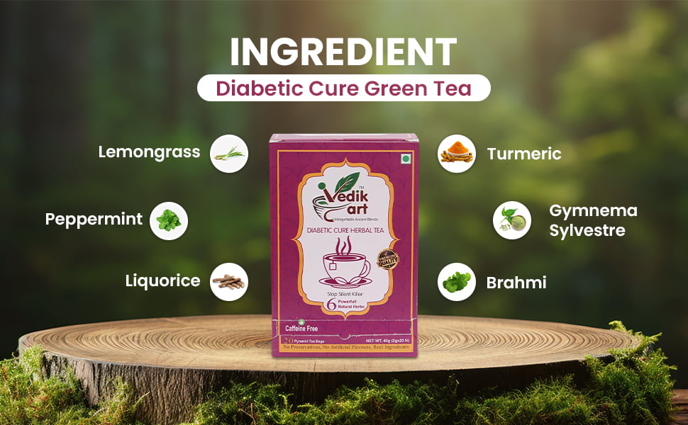 • Benefits Of Diabetic Cure Green Tea- Hight antioxidants, immunity booster, help to reduce stress, help to regulate blood sugar levels, help to reduce belly fat, helps reduce cancer risk, increases iron absorption, help manage stress and anxiety, help in seasonable cold & flu, 0 callories, help to improve digestion system, improve metabolism.